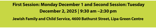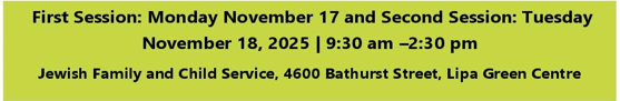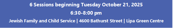 $120 per person JF&CS strives for inclusivity in all its programs, serving community members of any income, family structure, ability, sexual orientation, gender identity, religious affiliation, level of observance,race, ethnicity, cultural identity and place of origin. For more information or to register, please call 416.638.7800 x 6234 |